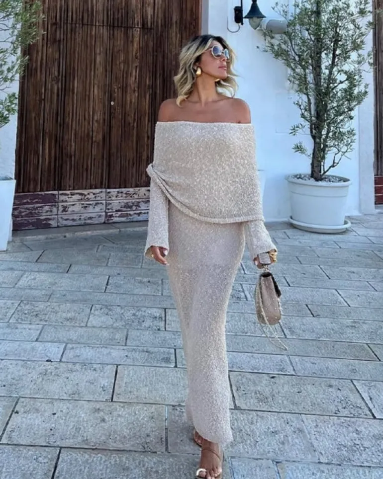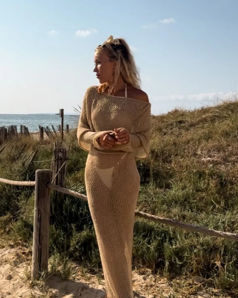 Produktbeschreibung: Das lange Kleid „Gina“ ist dein perfekter Begleiter für sommerliche Tage und elegante Abende. Erhältlich in Beige, Weiss und Schwarz, bietet dieses Kleid mit seinem grossen Kragen und den langen Ärmeln eine stilvolle und vielseitige Option für verschiedene Anlässe. Der weiche, elastische Stoff sorgt für hohen Tragekomfort und eine schmeichelhafte Passform. Ob am Strand oder bei einer Abendveranstaltung – mit dem Kleid „Gina“ bist du immer perfekt gekleidet.