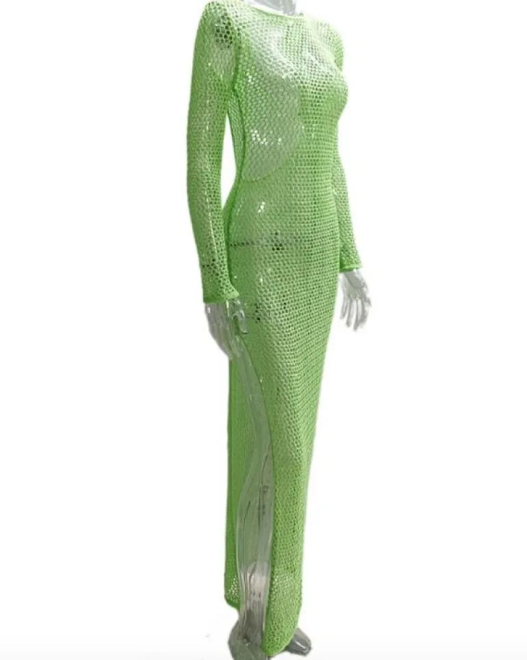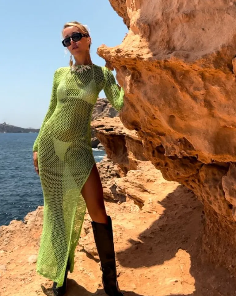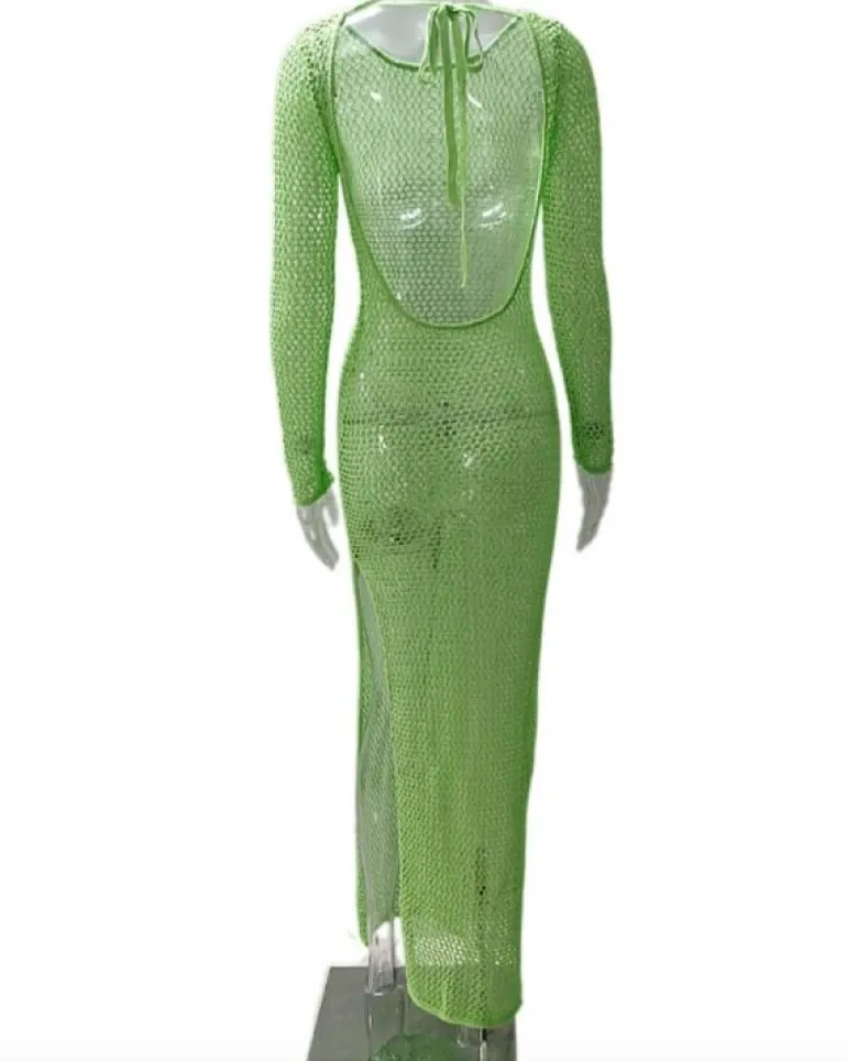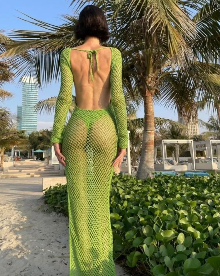Produktdetails: Absolutes Must-Have für den Sommer! Unser langes Netzkleid mit offenem Rücken und seitlichem Schlitz verleiht dir den perfekten Beach- oder Festival-Look. Im grobnetzigen Stil gehalten und bodenlang mit langen Ärmeln, lässt es dich stilvoll erstrahlen. Bestelle jetzt und werde zum Blickfang auf jedem Event!