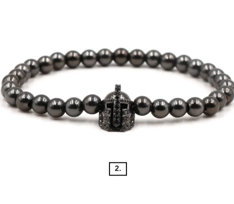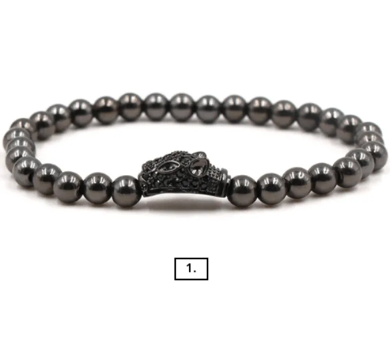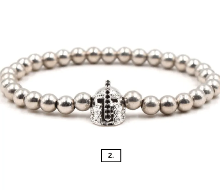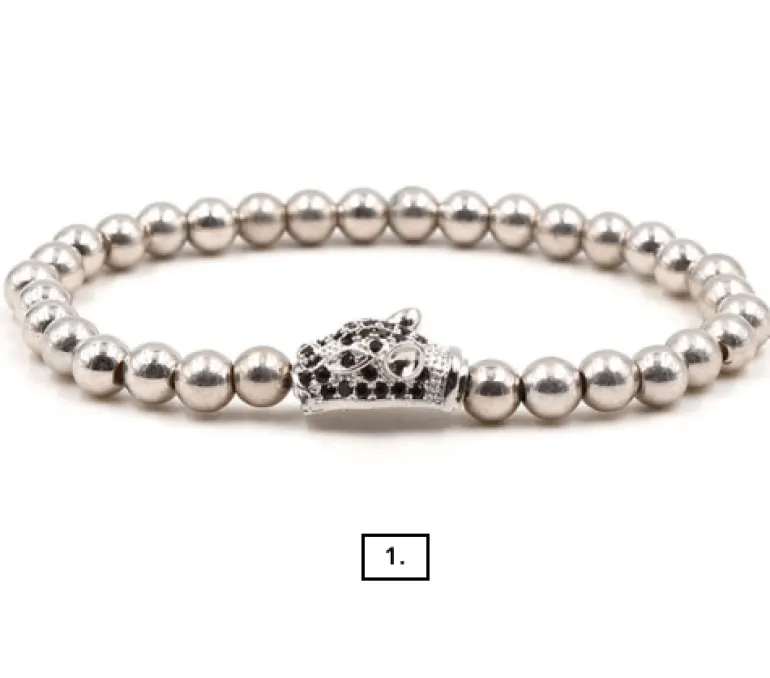 Produktdetails: 3 diverse Anhänger an den Armbändern. Tierkopf (1), Ritter (2) und Kugel (3).
