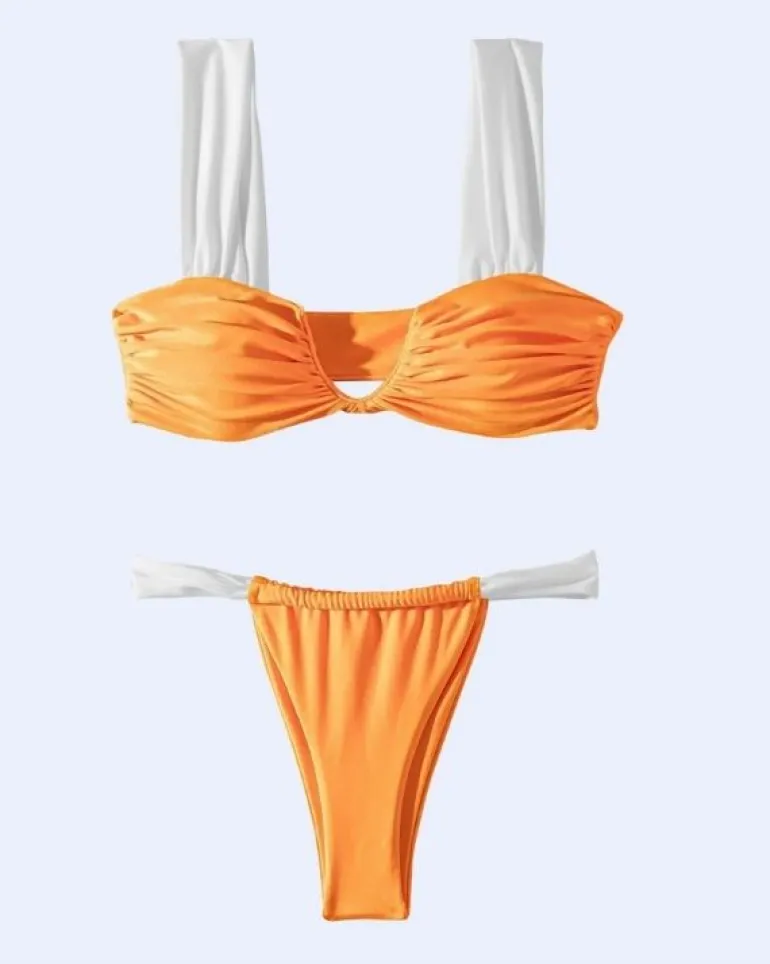 Produktbeschreibung: Mit dem Seraphina Bikini strahlst du wie die Sonne! Das leuchtende Orange kombiniert mit dem schlichten Weiss macht diesen Bikini zum ultimativen Sommer-Essential. Das Triangel-Top bietet dir eine tolle Passform und die High-Waist-Hose sorgt für extra Komfort. Ideal für sonnige Tage am Strand oder am Pool. Setze ein modisches Statement!