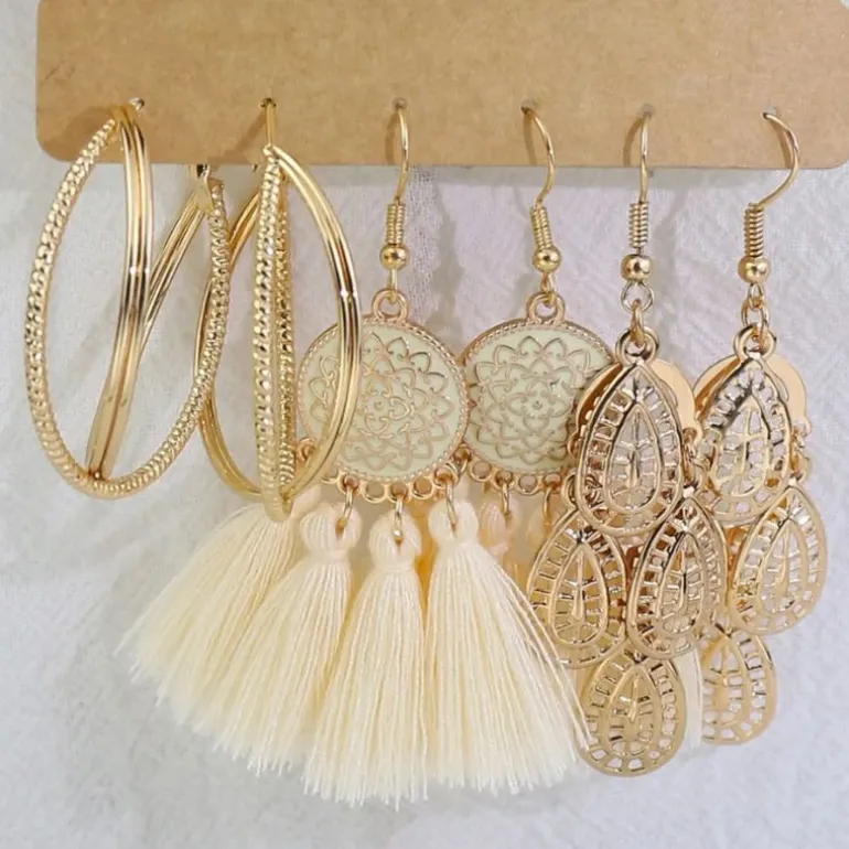 Produktdetails: Entdecke die Schönheit des Bohème-Stils mit unserem vielseitigen Boho-Ohrringe-Set. Jedes Paar ist ein handgefertigtes Kunstwerk, das Deinen natürlichen Charme unterstreicht. Die filigranen Muster und weichen Quasten reflektieren das freie Boho-Lebensgefühl – perfekt für Abenteuerlustige und Stilbewusste. Erlebe die Leichtigkeit des Seins mit diesem einzigartigen Schmuckstück.