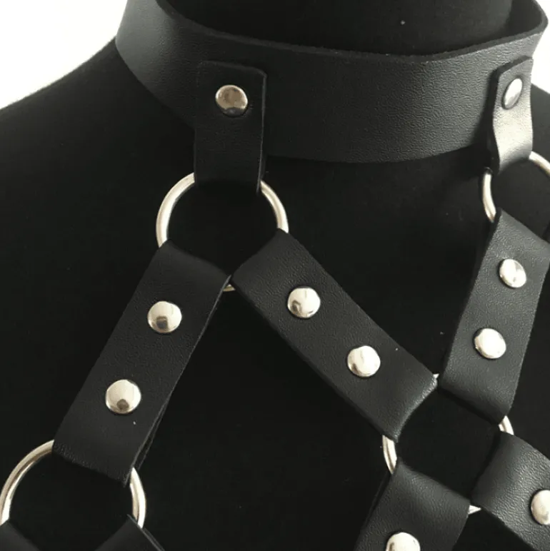 Produktdetails: Kunstleder Körpergürtel / Körpergeschirr / Harness Oberteil. Es gibt auch den passenden „Pixie“ Rock dazu. Ist zu finden in der Kategorie „Röcke“