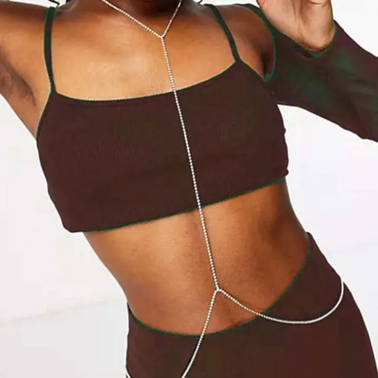 Produktdetails: Diese Bauch-halskette oder Bauchkette ist ein funkelnder und eleganter Körperschmuck, der aus hochwertigen Strasssteinen gefertigt ist. Die feinen Ketten mit Kristallsteinen verlaufen quer über das Dekolleté und betonen somit die natürliche Schönheit und Anmut des Trägers. Der besondere Clou ist jedoch der Verlauf der Kette auf Taillenhöhe, wo sie sich nach hinten zieht und mit einem Verschluss geschlossen wird. Dieser Eye-Catcher ist wasserfest und somit auch für den Einsatz im Schwimmbad oder am Strand geeignet. Ein absolutes Must-have für jede Frau, die auf der Suche nach einem einzigartigen und luxuriösen Schmuckstück ist.