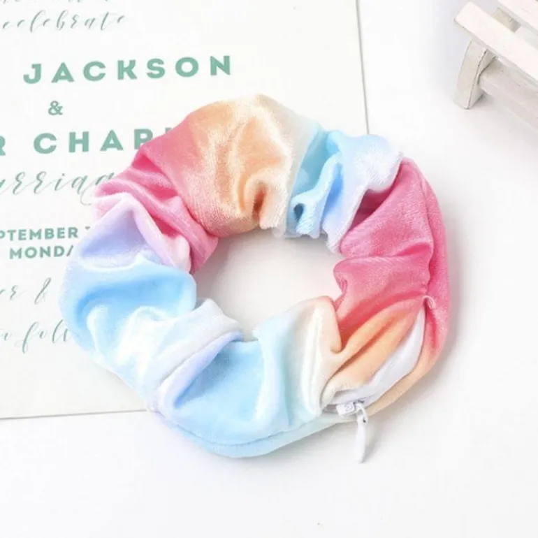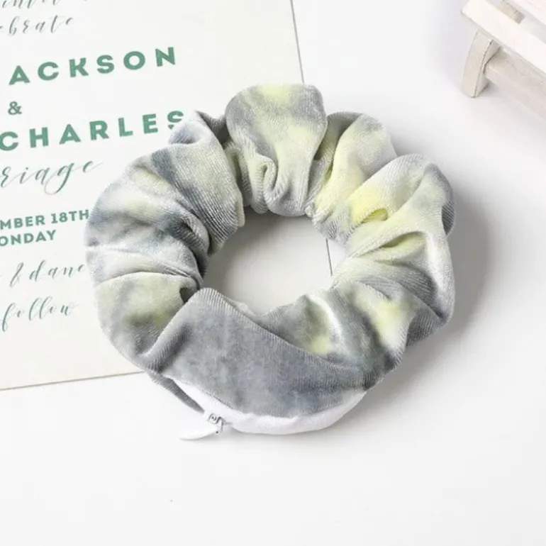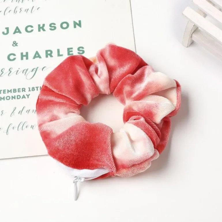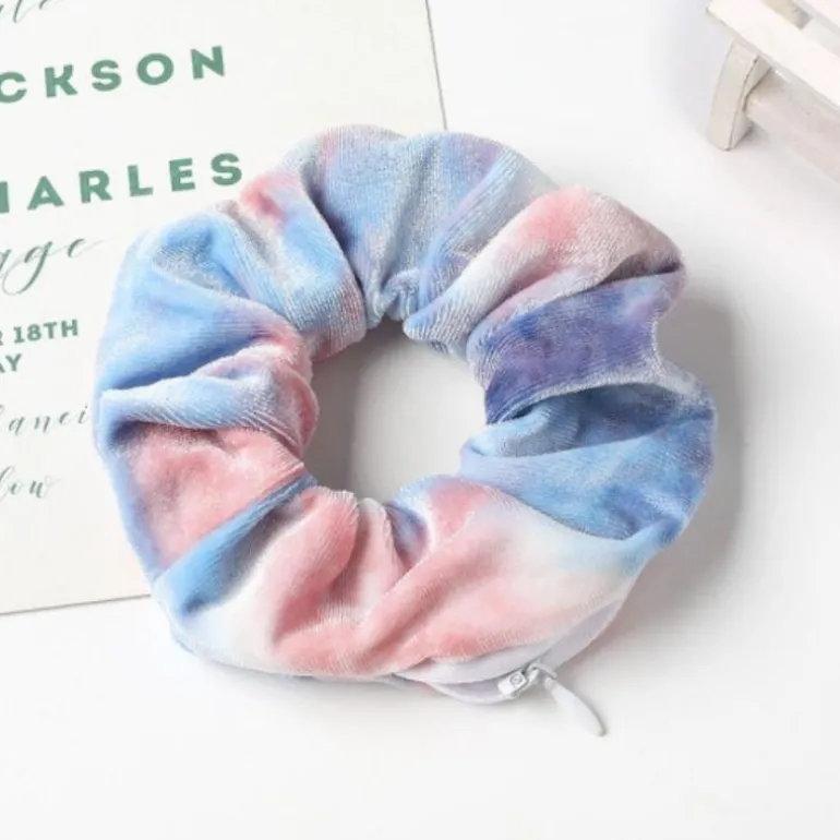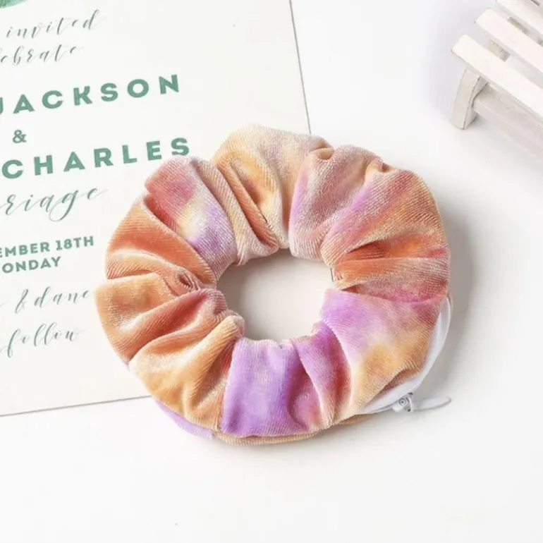 Produktdetails: Samt Scrunchies Haargummi mit Batik Farben Effekt. Velvet Batik Haargummi in vielen diversen Farben. Versteckter Reissverschluss damit Scrunchies auch als kleine Aufbewahrungstasche für Schlüssel, Kleingeld, Lippenstift etc. verwendet werden können. Elastisches Velvet Scrunchies Haargummi hält das Haar stillvoll zusammen und hält ihre Sachen sicher und unsichtbar.